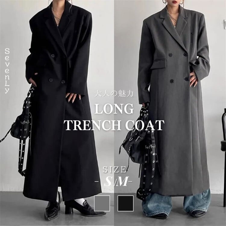 冬のマストアイテム、飽きのこないシンプルな海外デザインのトレンチコートです。超ロングで身体をすっぽりと包み込む絶妙なオーバーサイズで洗練された大人の女性を演出します。ベーシックなデザインなので色々なコーディネートやテイストで着回せるのも嬉しい、寒い日にこれ1枚羽織るだけでかっこよくなれる商品です。